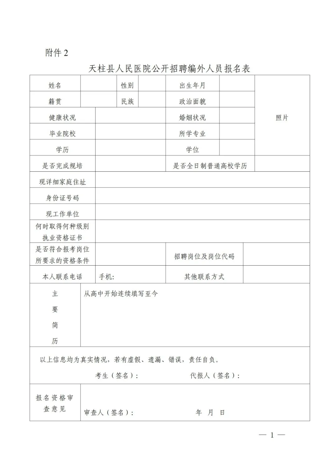 2.天柱县人民医院公开招聘编外人员报名表