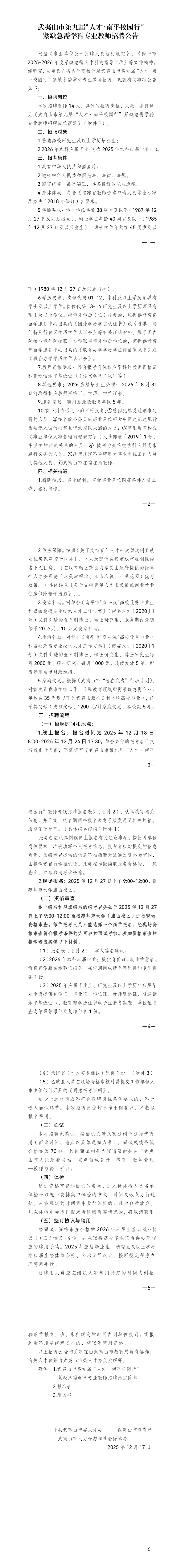 附件1:武夷山市第九届“人才.南平校园行”紧缺急需学科专业教师招聘岗位简章.pdf (123 KB)