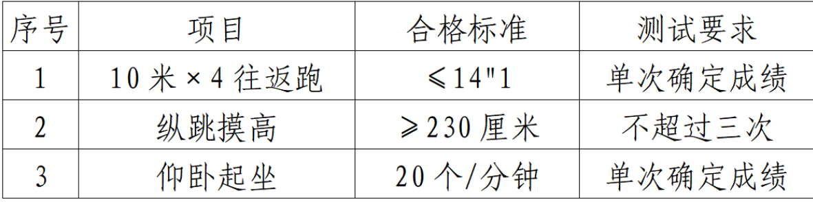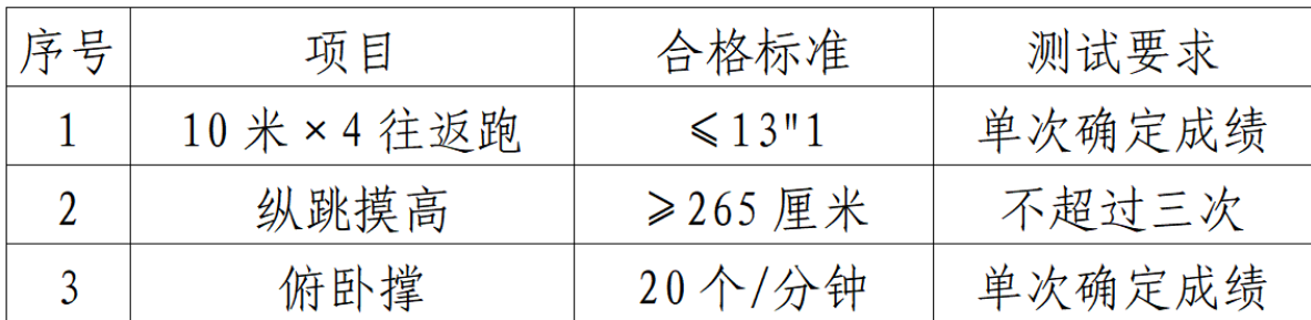 未按规定时间、地点参加体能测试的,视为自动放弃报考资格。体能测试单项不合格或未按要求参加体能测试的人员,不能进入笔试。未通过体能测试人员,笔试费用全额退回。