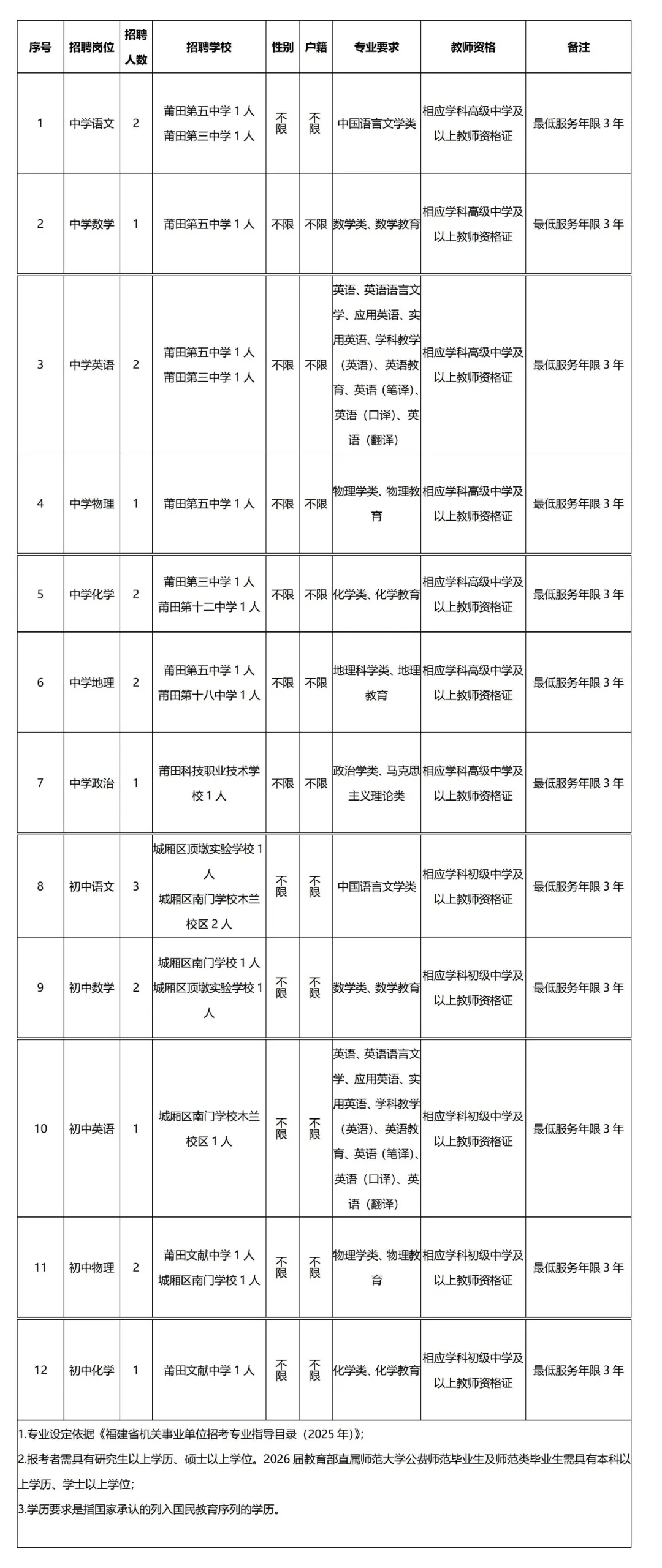 原始标题:莆田市城厢区2026年公开考核招聘新任教师方案