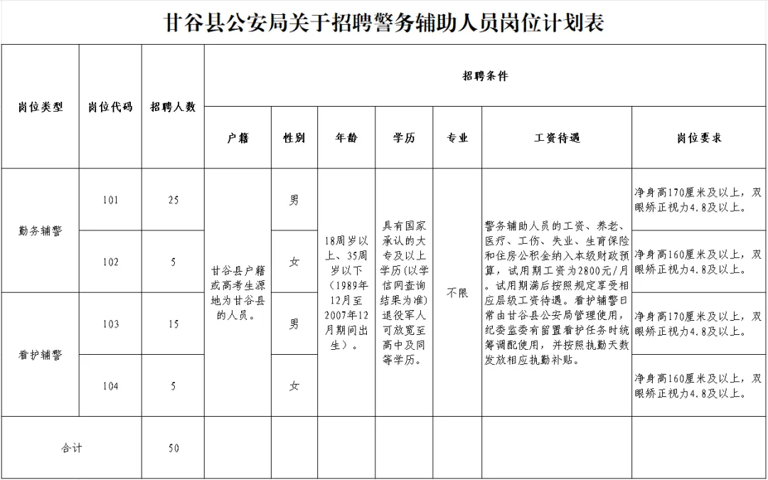 原始标题:甘谷县公安局关于招聘警务辅助人员的公告