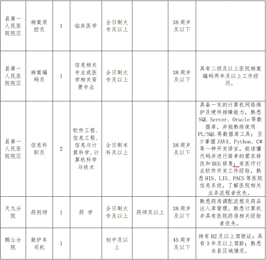 1.各岗位招聘条件详见招聘岗位表(附件1)有关学历、专业、年龄及其他要求。