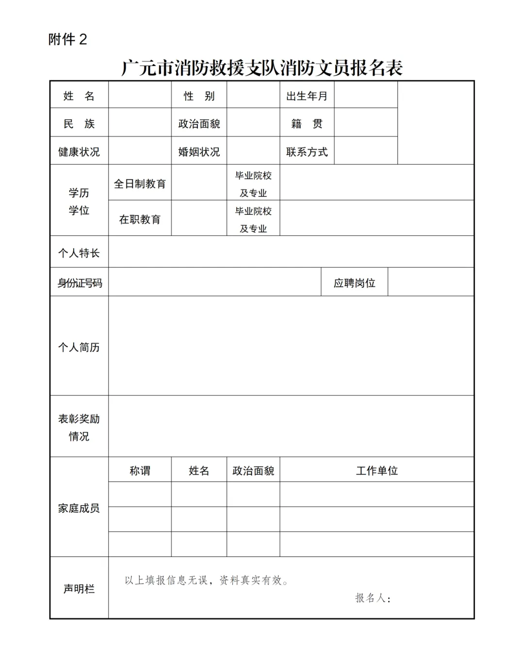 消防文员报名登记表