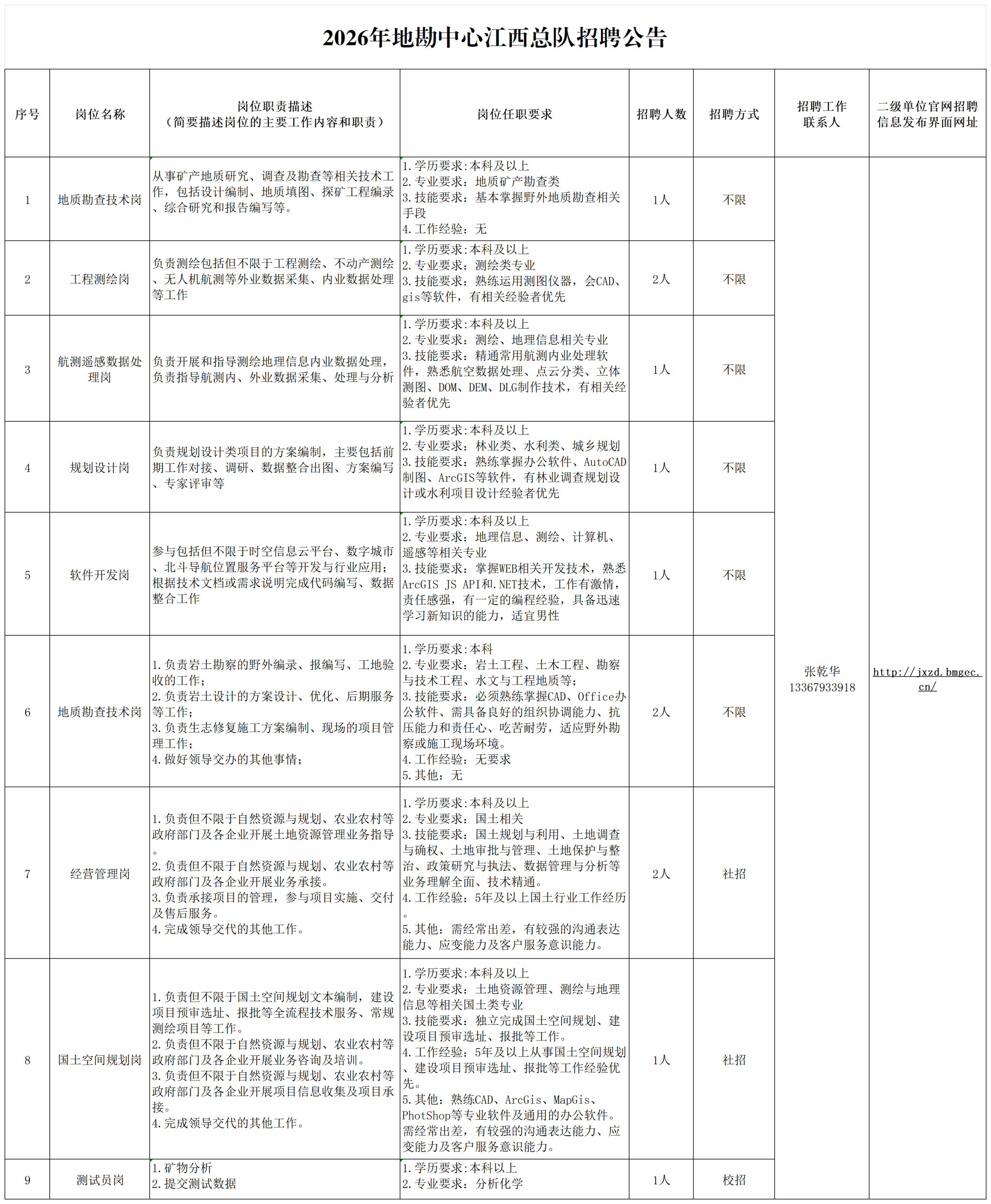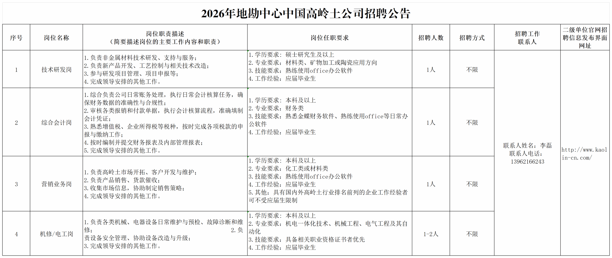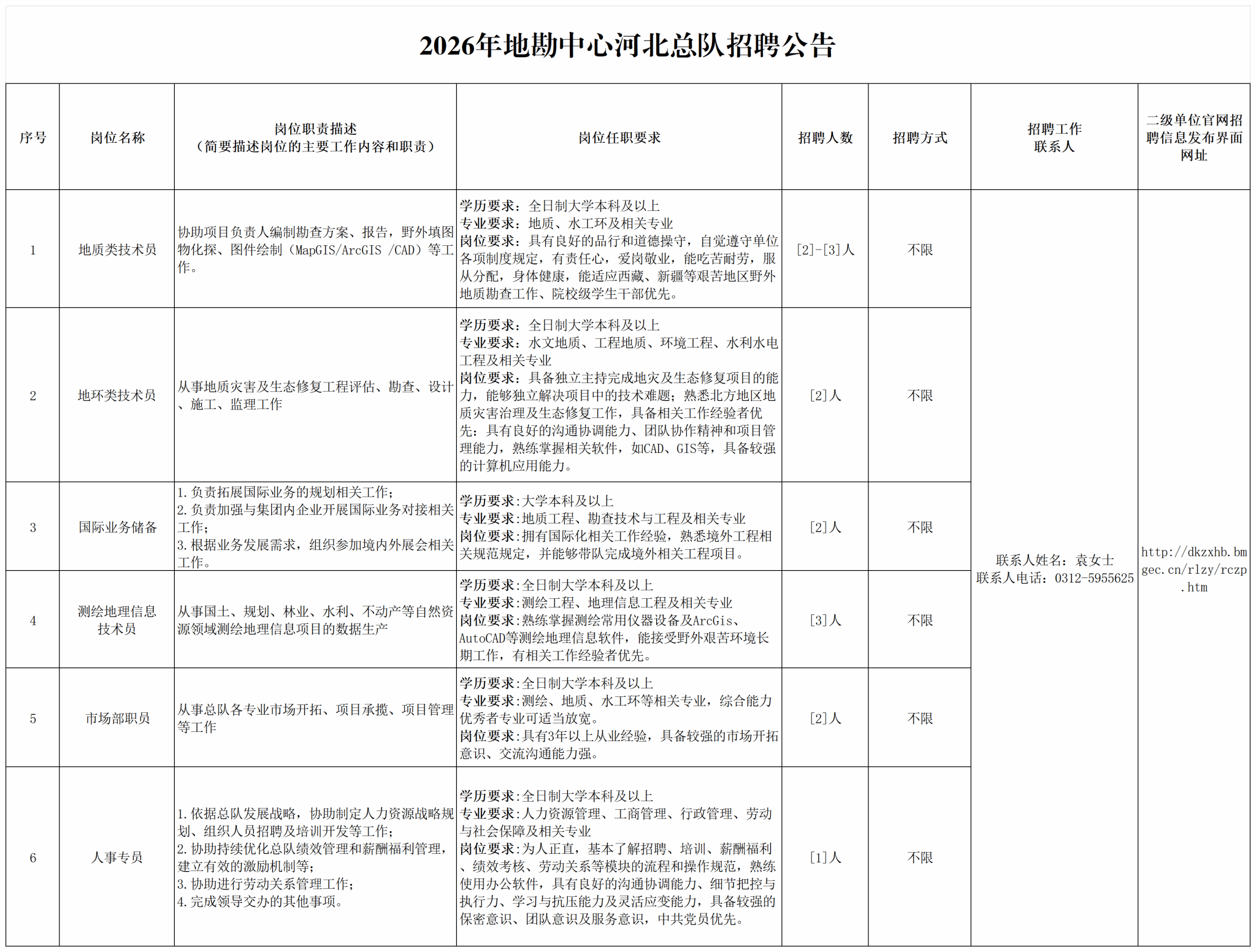 原标题:地勘中心(中国非矿)成员单位2026年招聘公告(一)