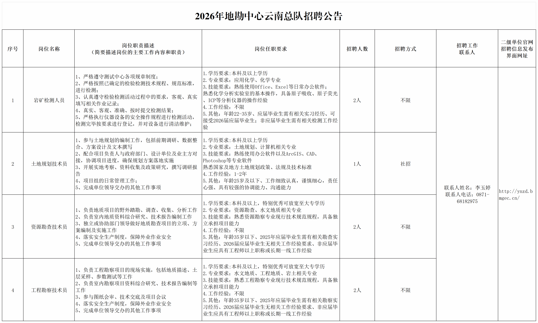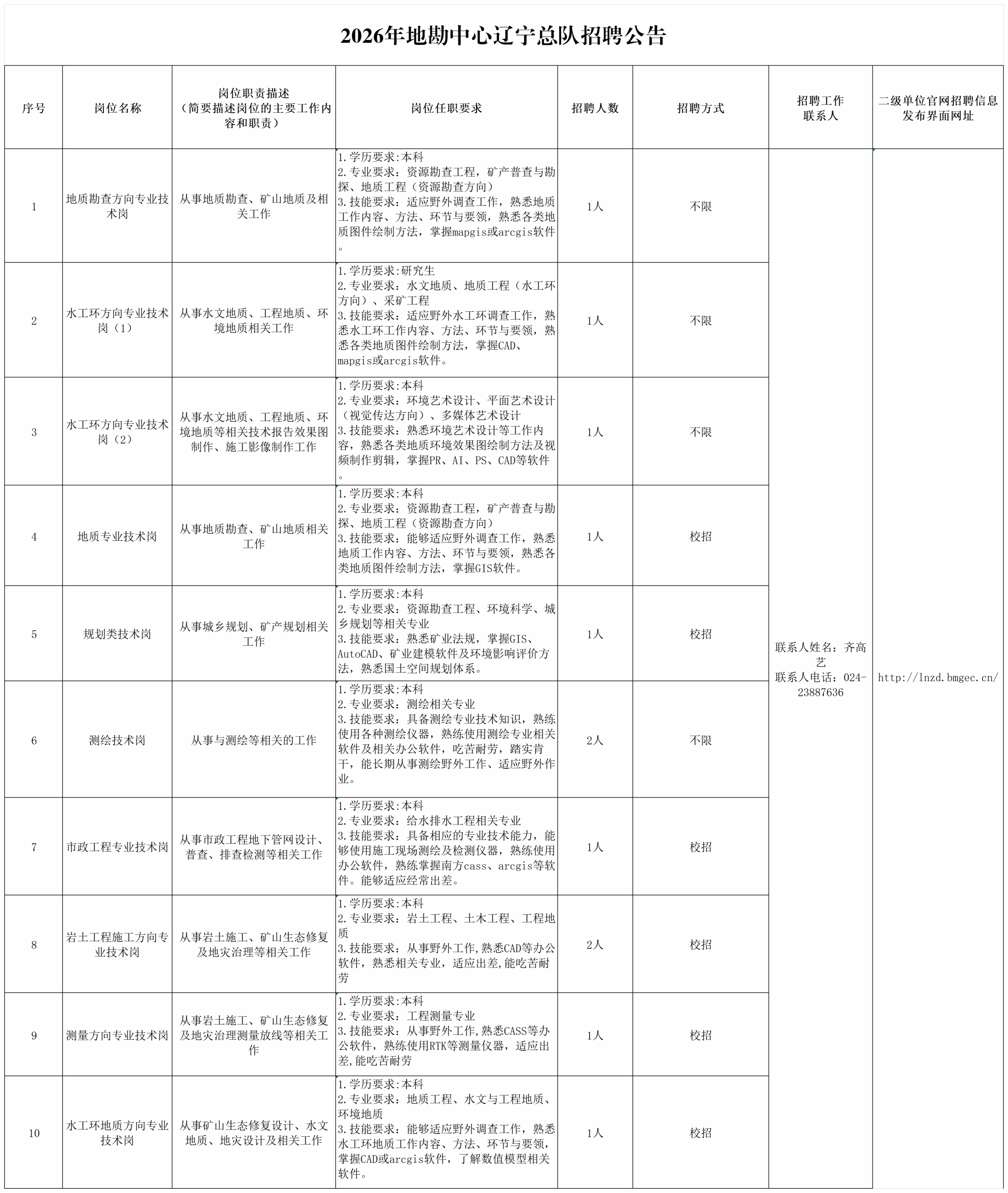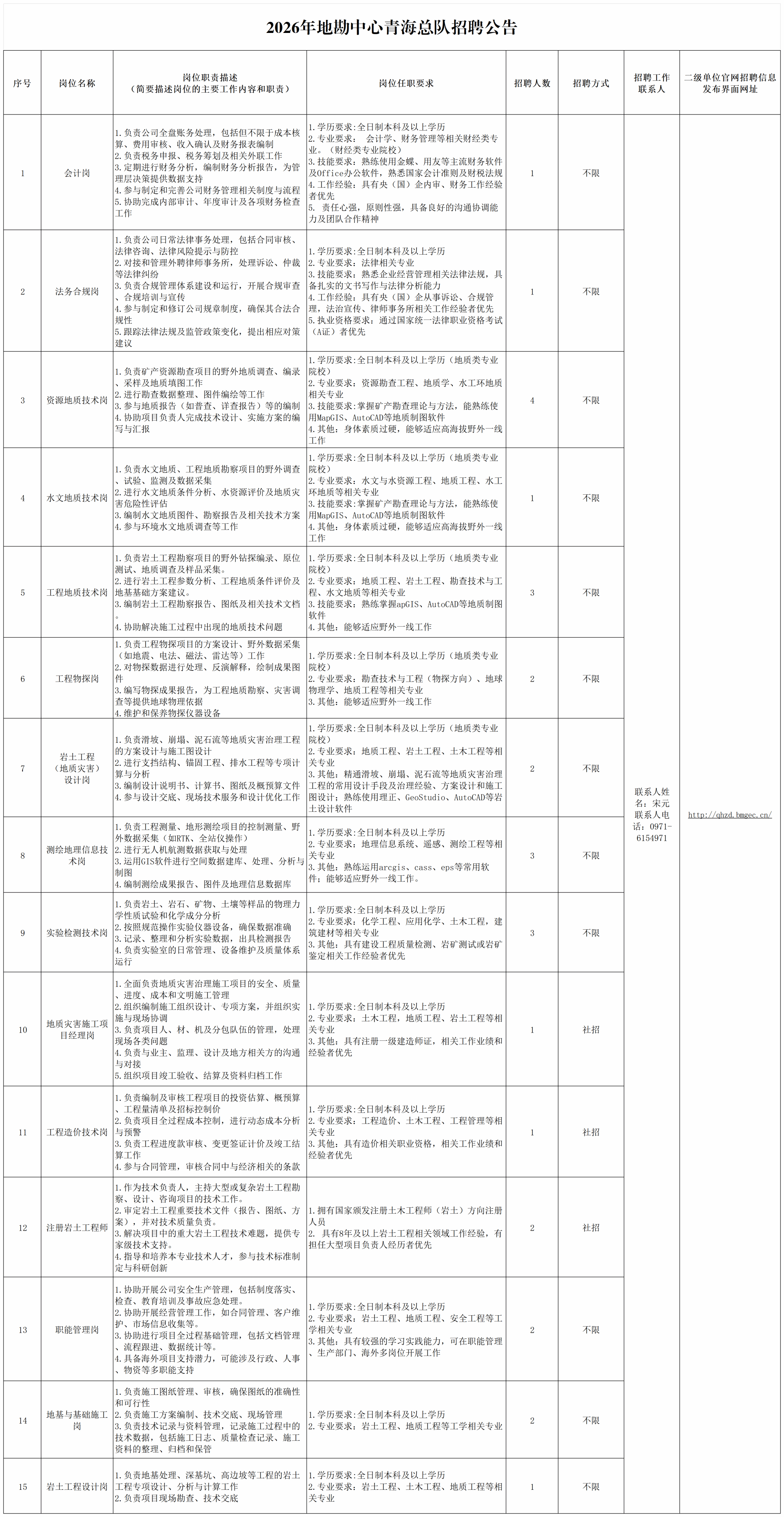 原标题:地勘中心(中国非矿)成员单位2026年招聘公告(一)