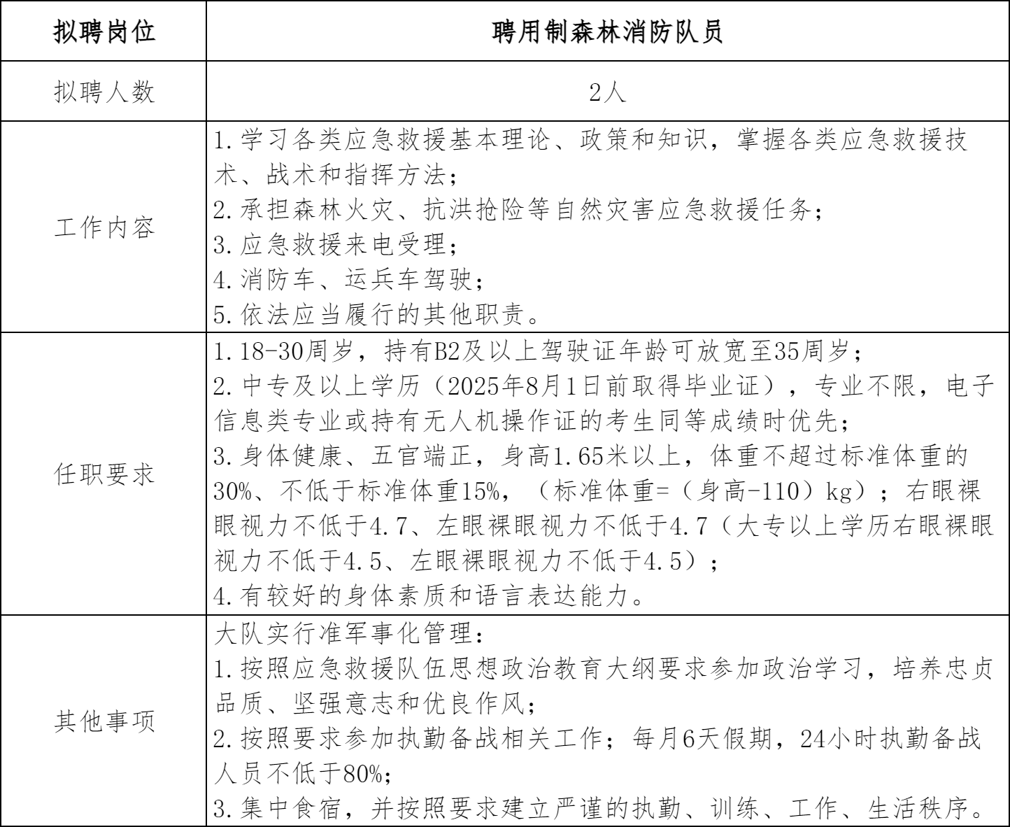 为进一步强化全区应急救援队伍建设,充实应急救援力量,根据应急管理相关要求,吉安市青原区专业森林消防大队决定面向社会招聘2名聘用制森林消防队员,现将有关事项公告如下: