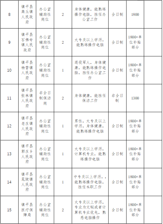 附件:镇平县公益性岗位招聘信息表
