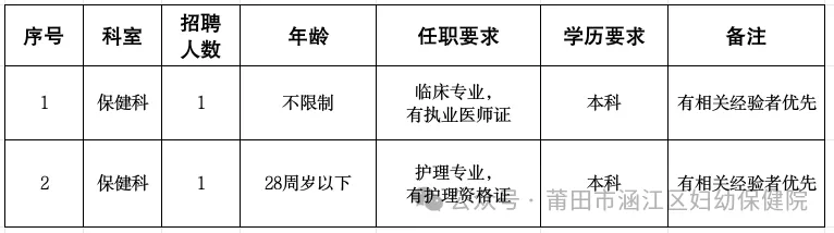 原标题:招聘信息|莆田市涵江区妇幼保健院编外人员招聘公告