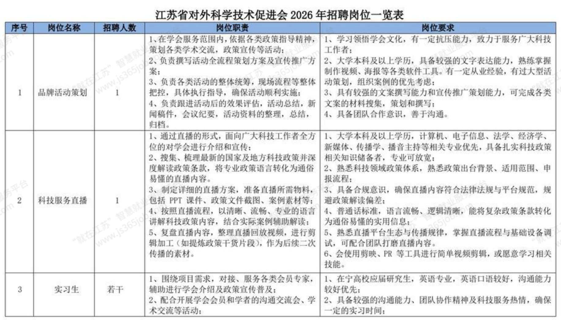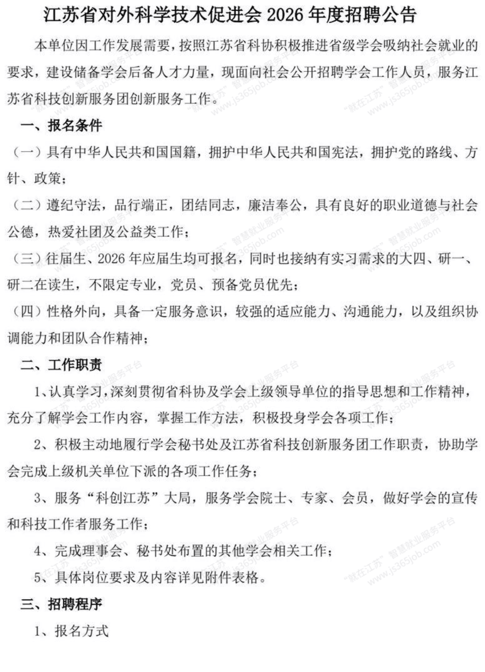 原始标题:江苏省对外科学技术促进会2026年度招聘公告
