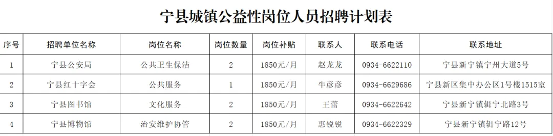 原始标题:宁县城镇公益性岗位工作人员招聘公告