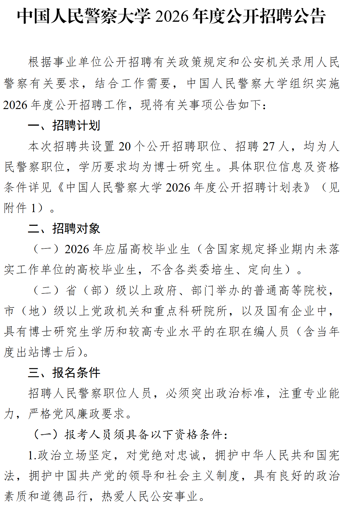 原始标题:中国人民警察大学2026年度公开招聘公告