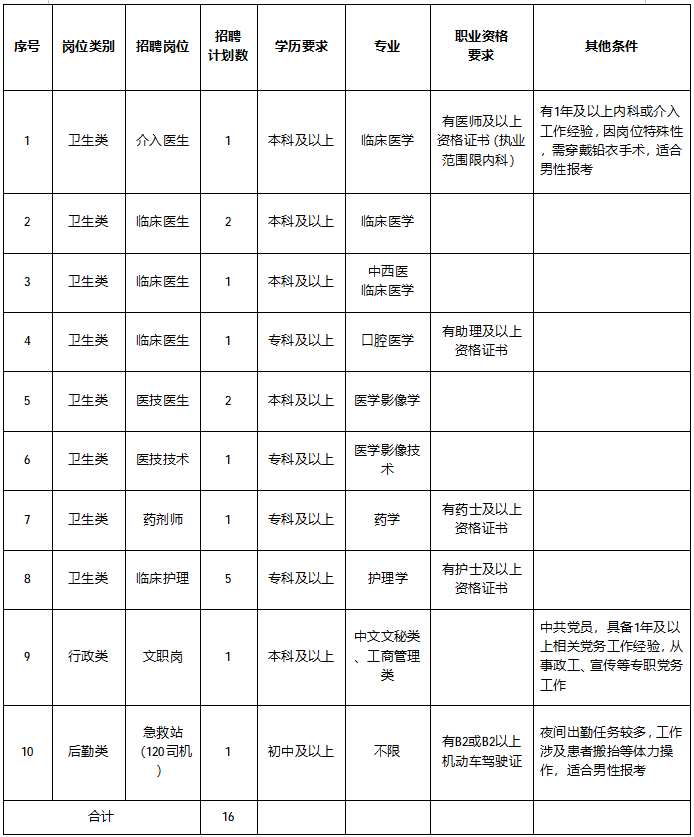 为加强医院人才队伍建设,根据医院发展需要,现面向社会公开招聘16名工作人员。现将有关事项公告如下: