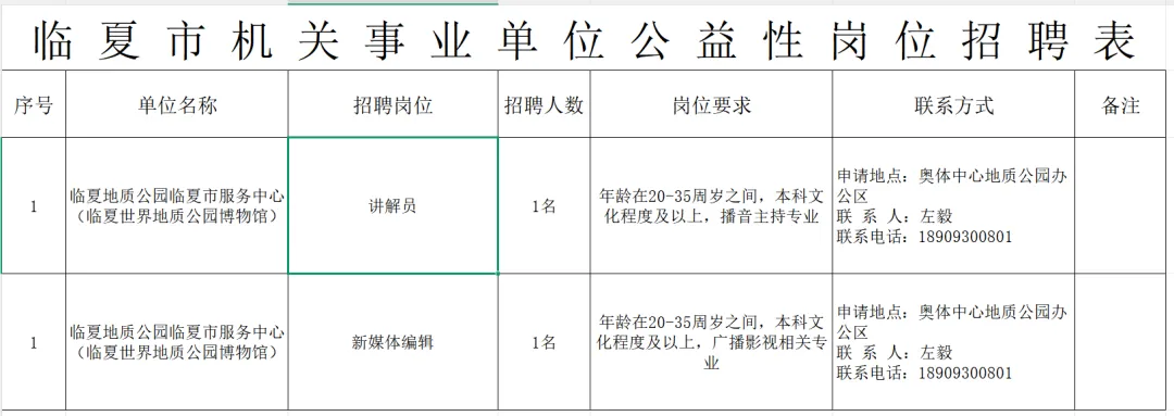 为促进就业困难人员就业,充分发挥公益性岗位托底安置作用,根据州人社局、州财政局《关于印发临夏州公益性岗位开发管理工作实施细则的通知》(临州人社通〔2020〕105号)等有关文件规定及工作需要,现面向社会公开招聘城镇公益性岗位人员。