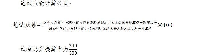 (2)笔试内容包括:职业能力倾向测验和综合应用能力(分三类:综合管理类(A类)、社会科学专技类(B类)、自然科学专技类(C类))两门,各150分,总分300分,笔试成绩、面试成绩和考试总成绩均保留两位小数。