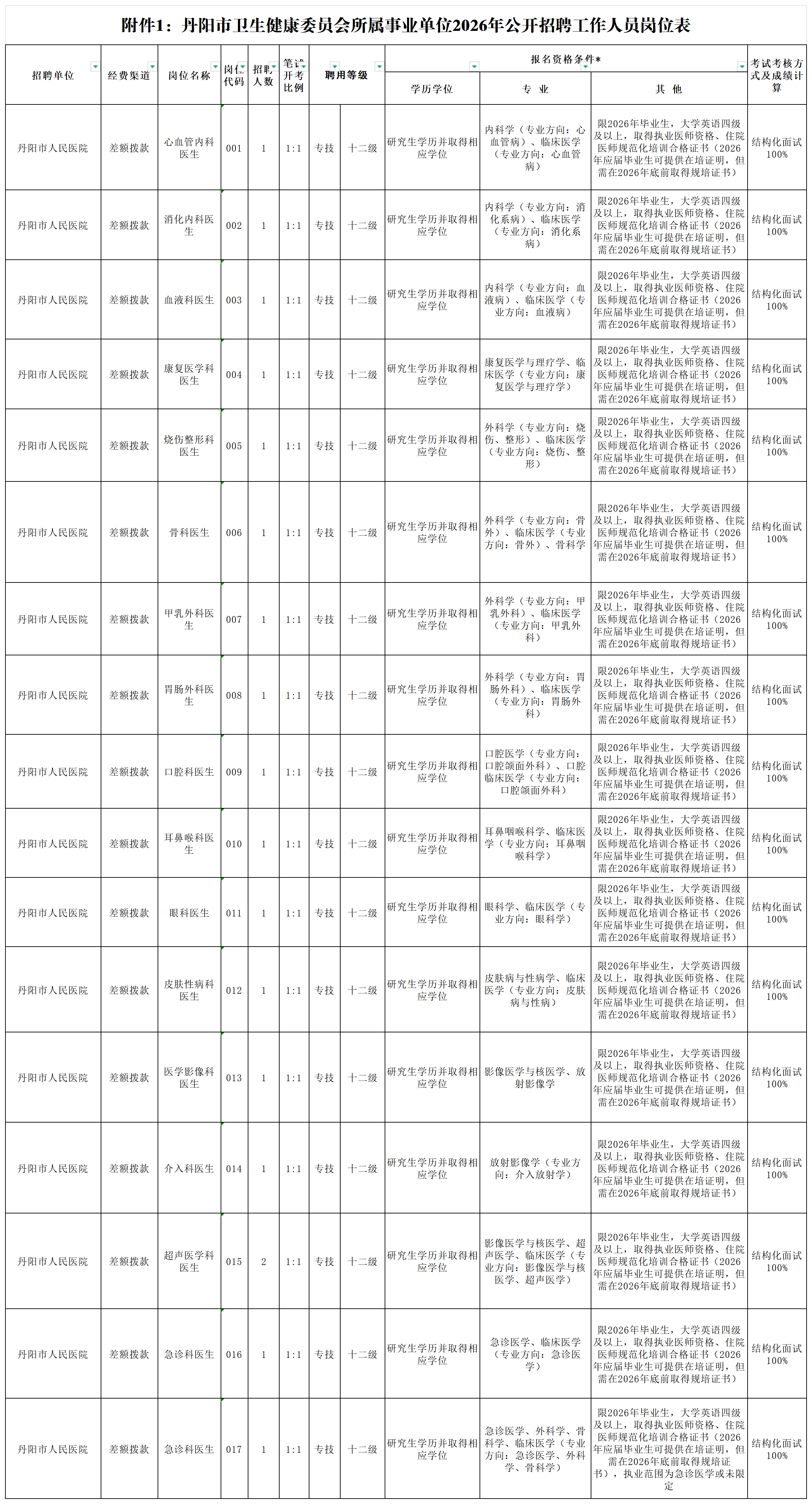 附件:1.丹阳市卫生健康委员会所属事业单位2026年公开招聘工作人员岗位表;