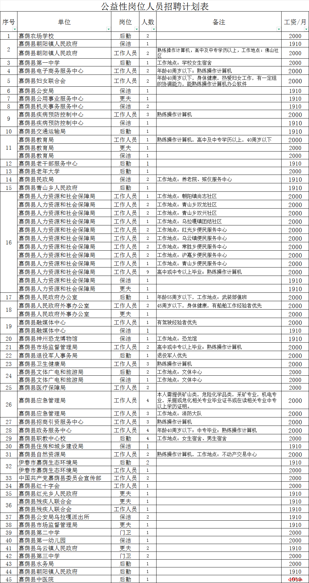 (二)招聘岗位:公益性岗位工作人员招聘计划表。