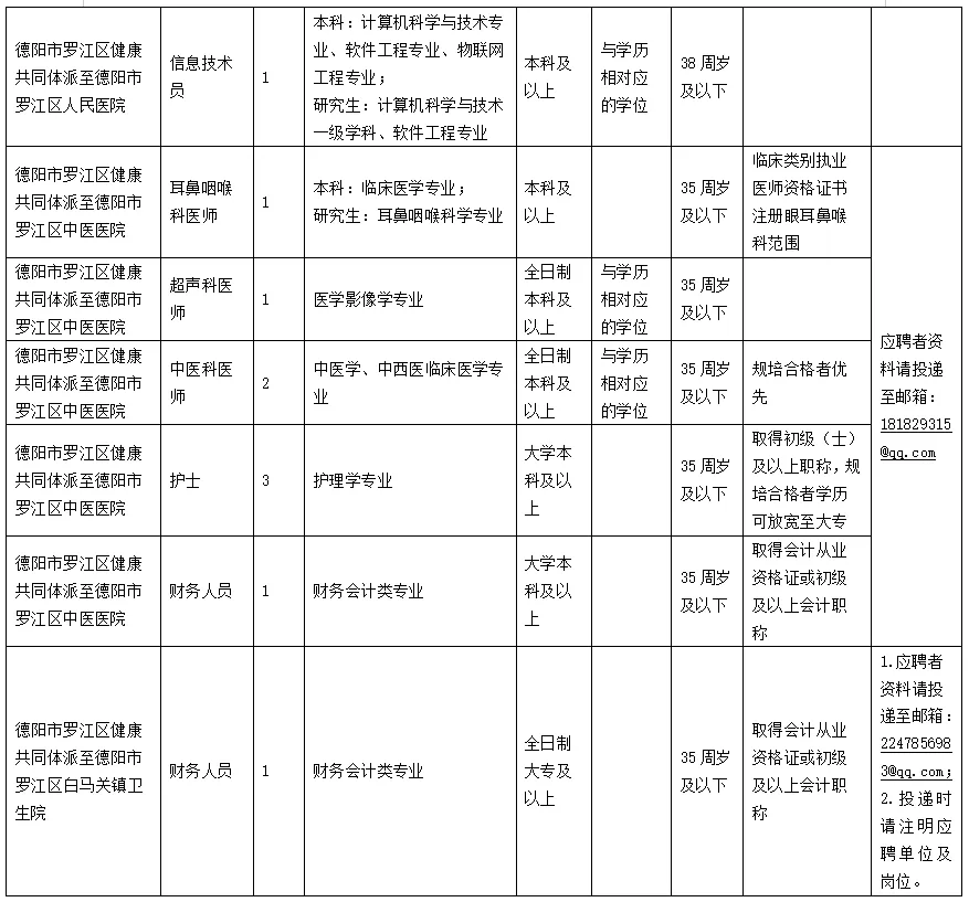 2.应聘德阳市罗江区中医医院岗位发至邮箱:181829315@qq.com