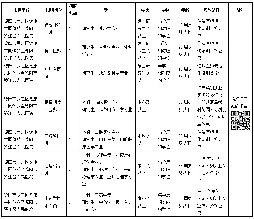 为全面推进德阳市罗江区健康共同体战略发展,加强紧密型县域医共体卫生人才队伍建设,提升区域医疗服务能力,根据健共体发展需要,结合各成员单位用人需求实际情况,现面向社会公开招聘编外人员,招聘具体专业及条件公告如下: