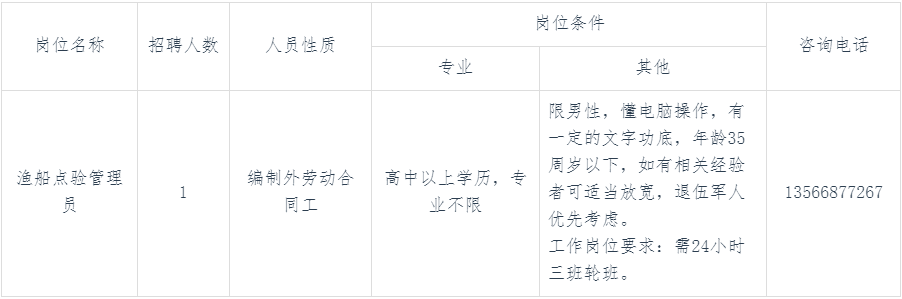 因工作需要,椒江区大陈镇人民政府决定面向社会公开招聘编制外工作人员共1名。