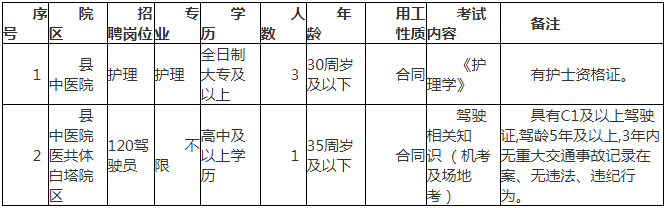 注:公告未尽事宜,由仙居县中医院人事科负责解释。