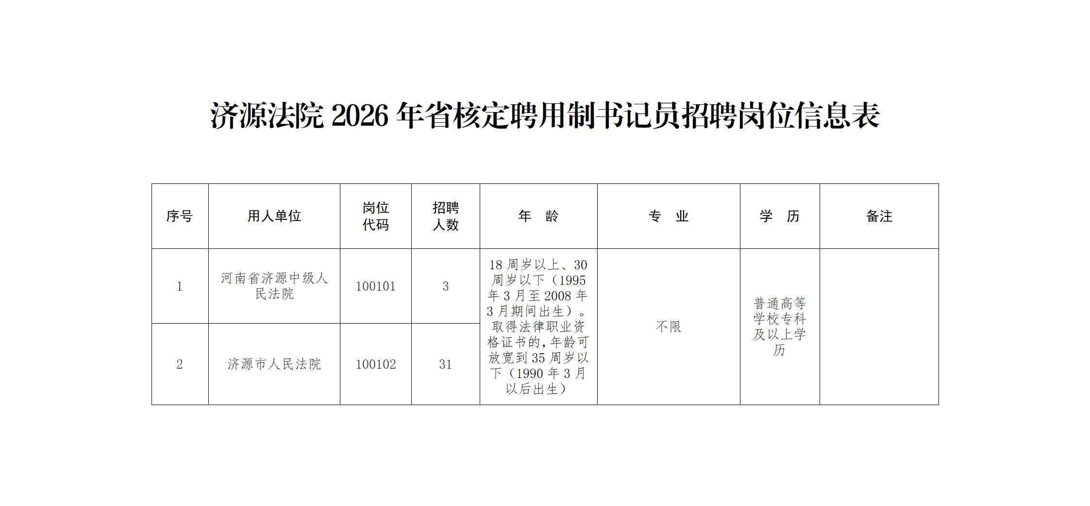 附件:济源法院2026年省核定聘用制书记员招聘岗位信息表