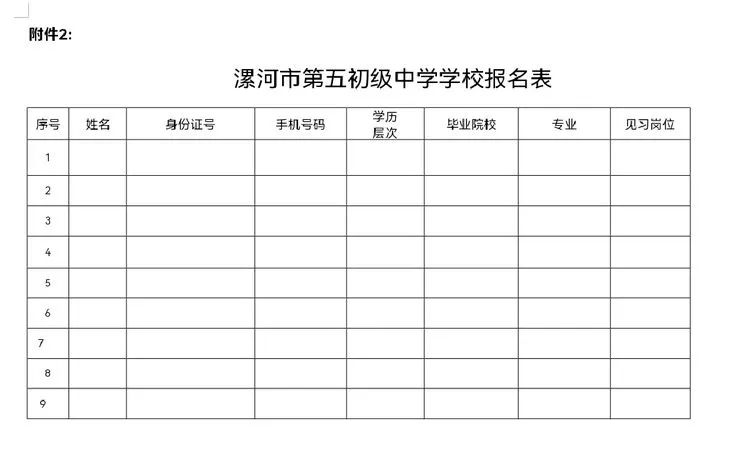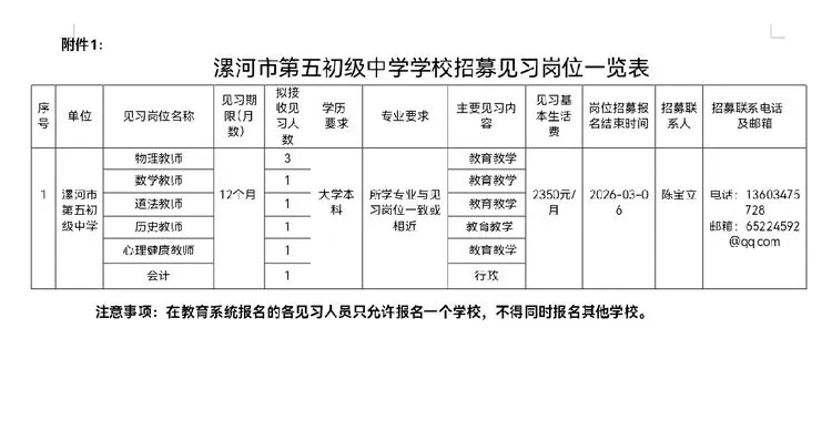 附件1:漯河市第五初级中学招募见习岗位一览表