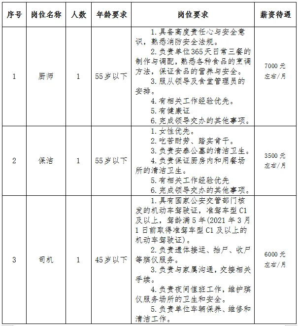 因工作需要,安义县殡葬服务所现面向社会招聘工作人员,具体要求如下: