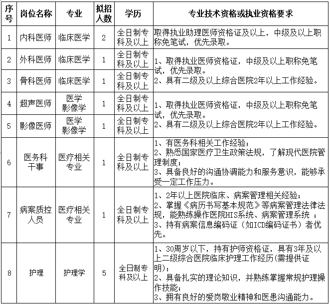 因业务发展需要,我院拟招聘如下岗位:
