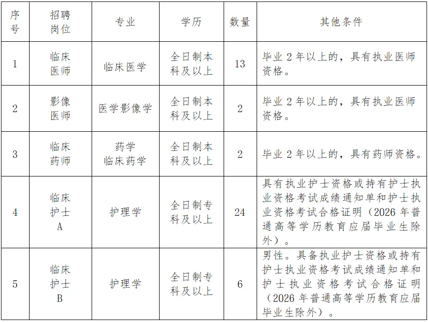 5、具有招聘岗位要求的学历、专业和技能条件(详见《围场县医院2026年公开招聘卫生专业技术人员岗位信息表》)。