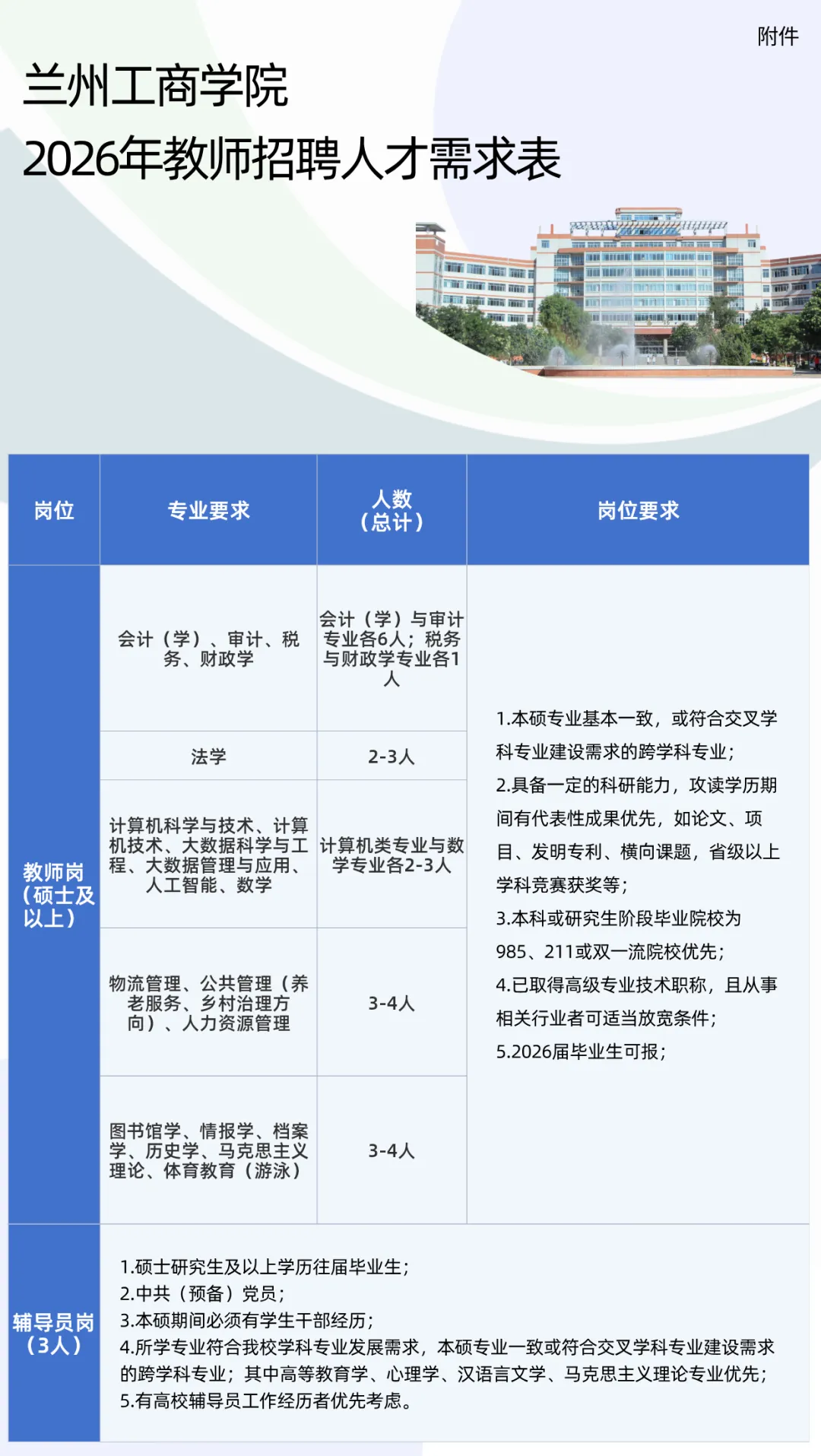 原始标题:兰州工商学院丨2026年教师招聘公告(第二批)