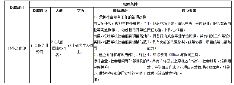 原始标题:四川工商学院招聘对外合作部工作人员公告