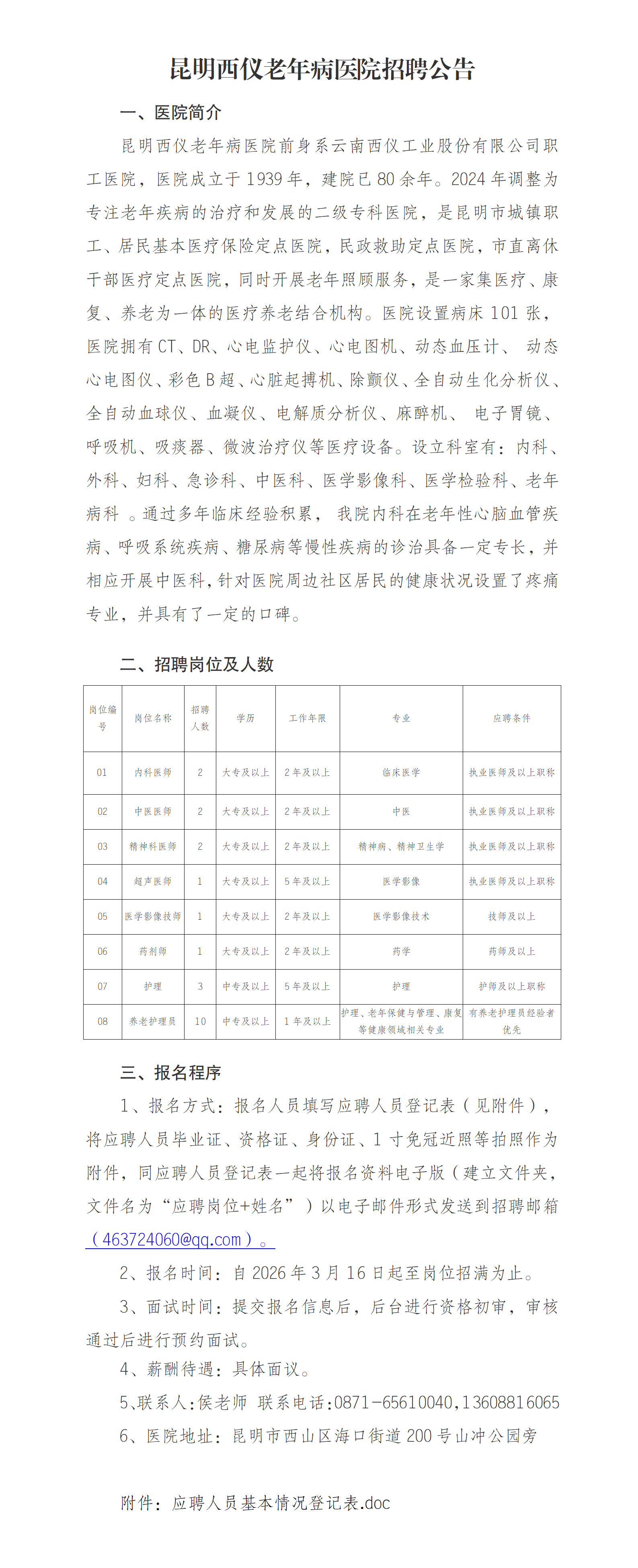 原始标题:昆明西仪老年病医院招聘公告