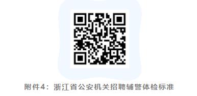 体检工作由市公安局组织实施。在规定的时间、指定的地点进行。体检标准详见《浙江省公安机关招聘辅警体检标准》(附件4),
