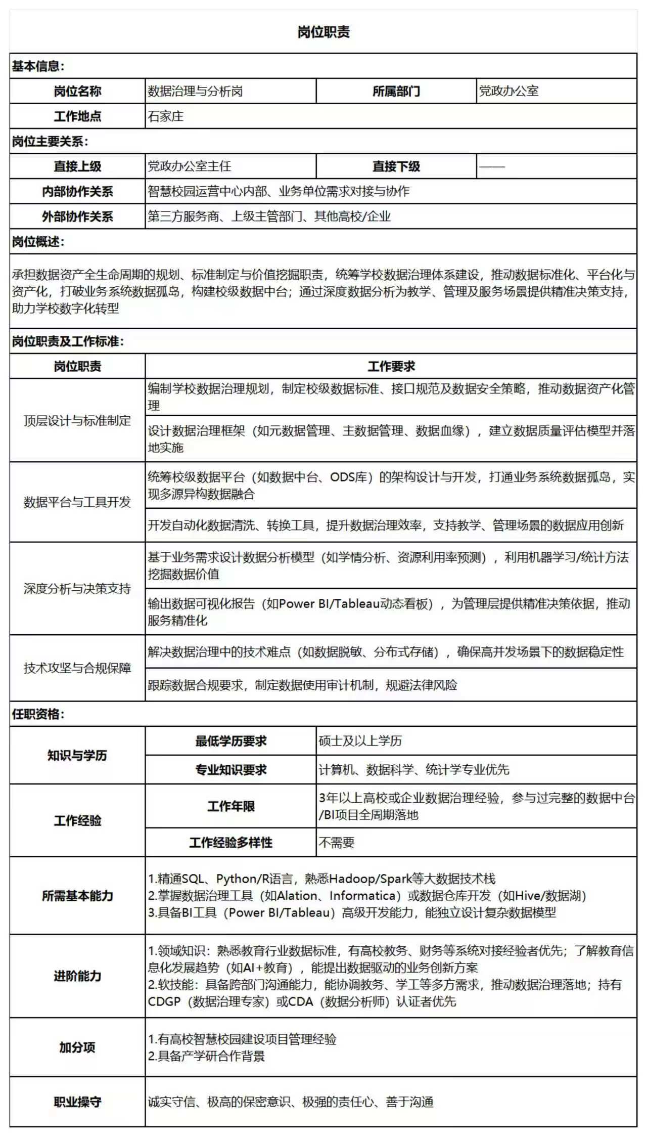 (二)数据治理与分析岗(1人)