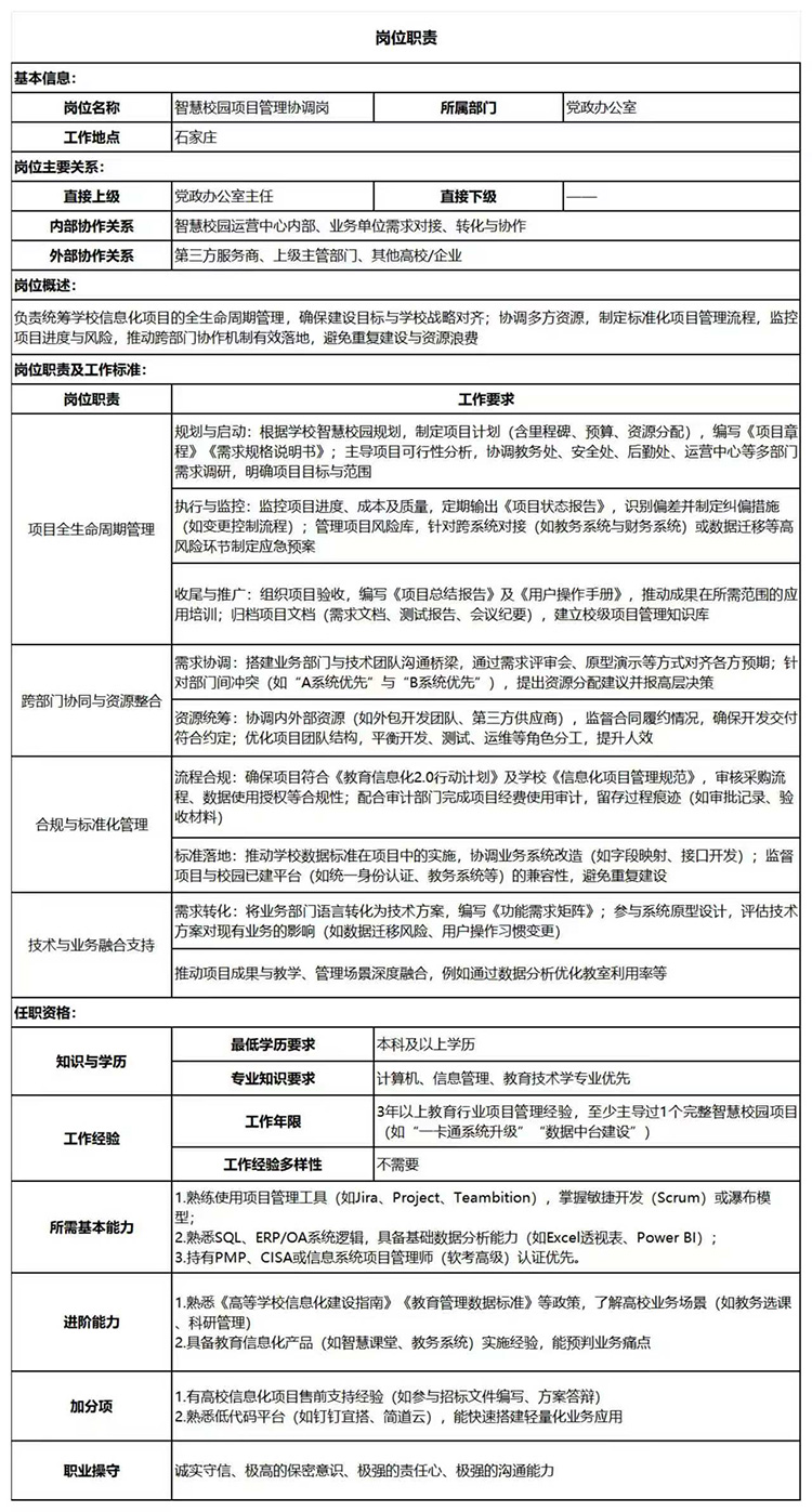 (一)智慧校园项目管理协调岗(1人)