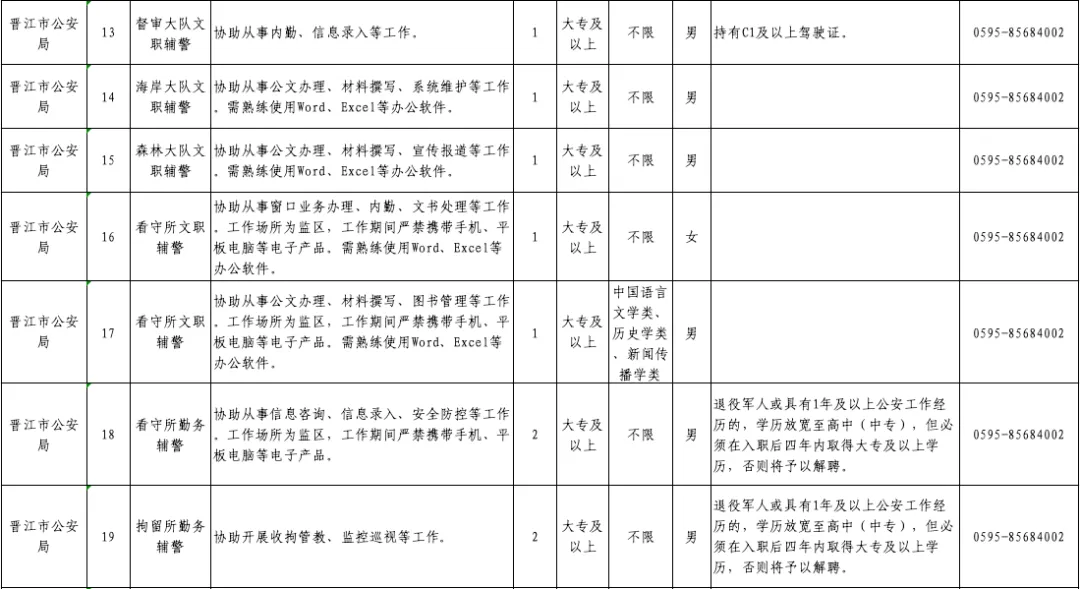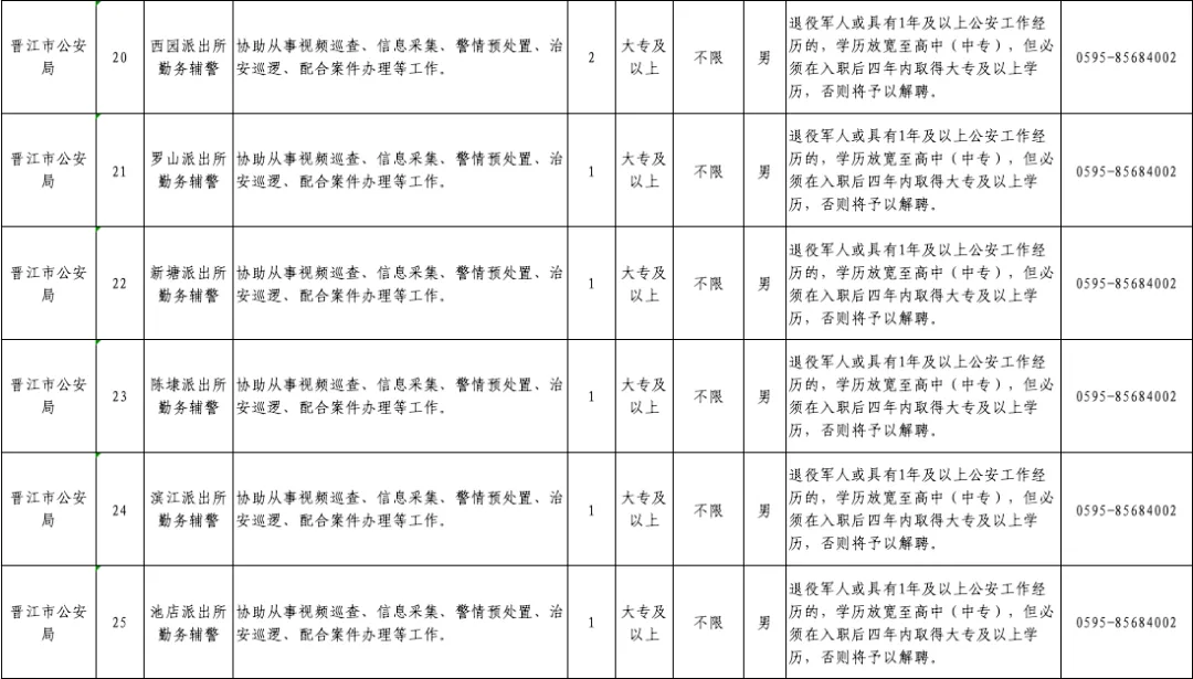 原标题:晋江公安2026年度第一期警务辅助人员招聘公告