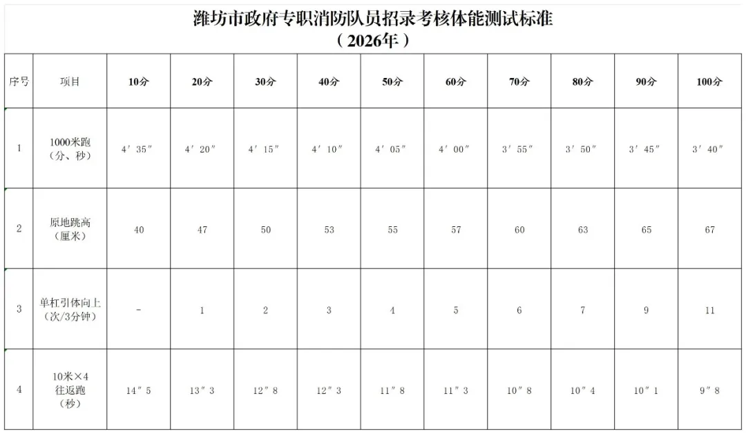 原标题:潍坊市2026年上半年政府专职消防员招录简章