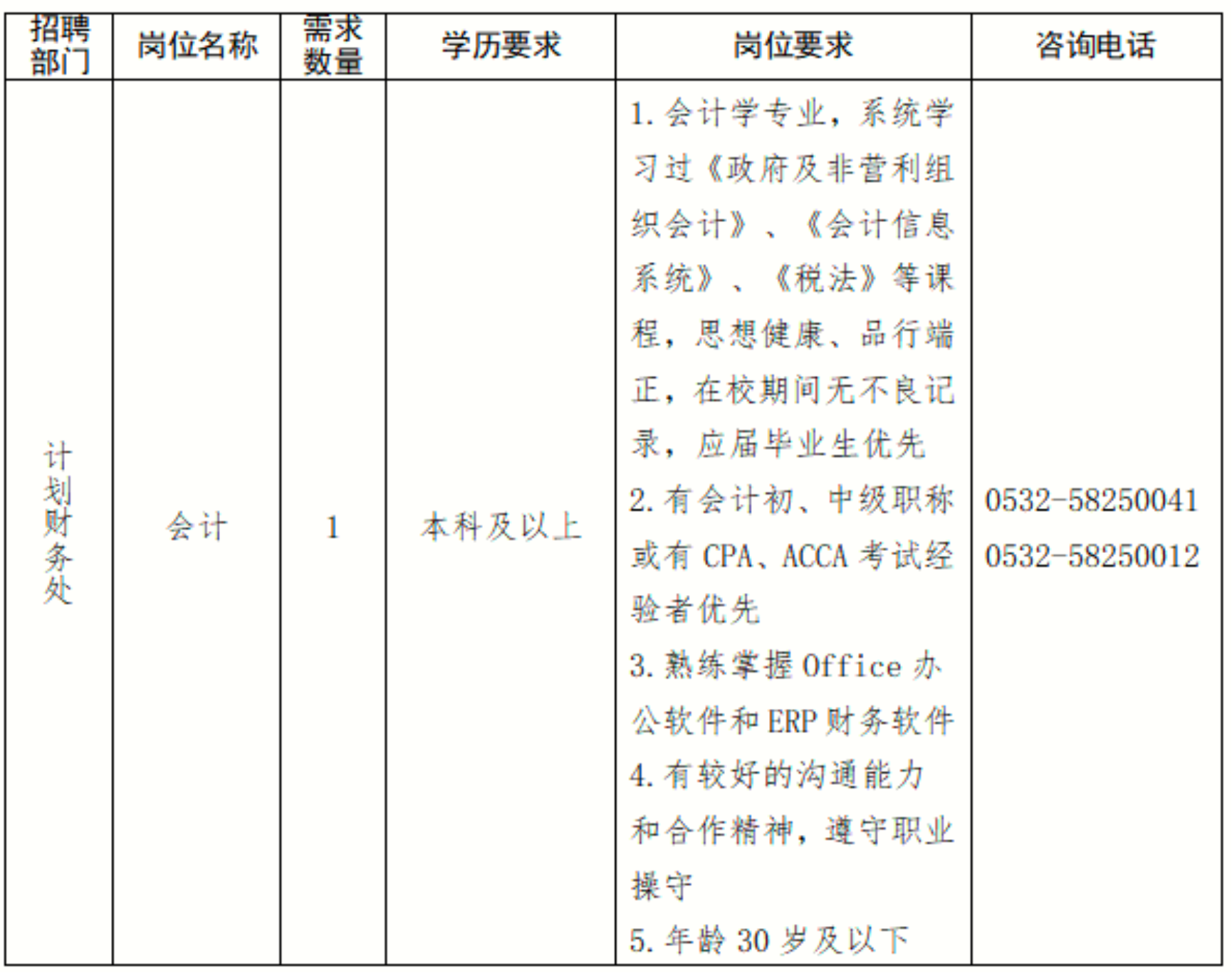 联系电话:0532-58250012