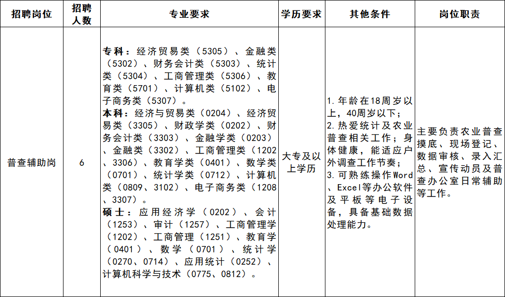 原始标题:丰城市普查中心公开招聘编外人员6名