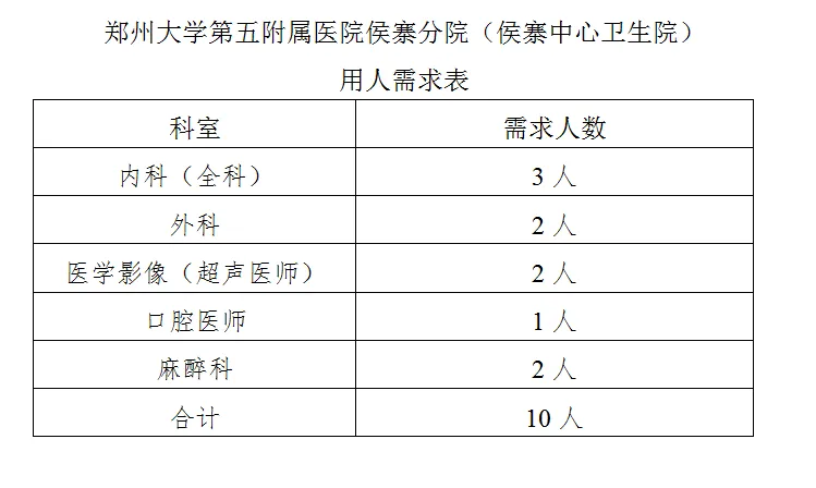 原始标题:【招聘公告】郑州大学第五附属医院侯寨分院招聘工作人员公告