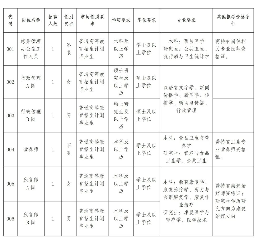 大理州妇幼保健院(州儿童医院、州托育综合服务中心)因工作需要,现面向社会公开招聘编外聘用人员6名。现将有关事宜公告如下: