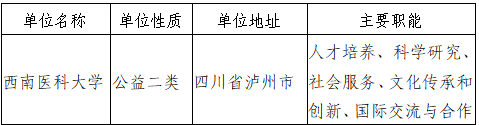 根据《事业单位人事管理条例》《事业单位公开招聘人员暂行规定》和《四川省事业单位公开招聘工作人员实施办法》等有关规定,经四川省教育厅备案,西南医科大学拟面向社会公开考核招聘工作人员共40名。现将本次公开招聘有关事项公告如下(本公告同时在四川省人力资源和社会保障厅官网〈http://rst.sc.gov.cn,下同〉“人事考试”专栏、四川省教育厅官网〈http://edu.sc.gov.cn,下同〉西南医科大学官网〈https://www.swmu.edu.cn,下同〉发布)。