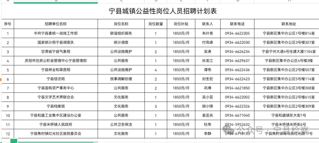 原始标题:宁县城镇公益性岗位工作人员招聘公告