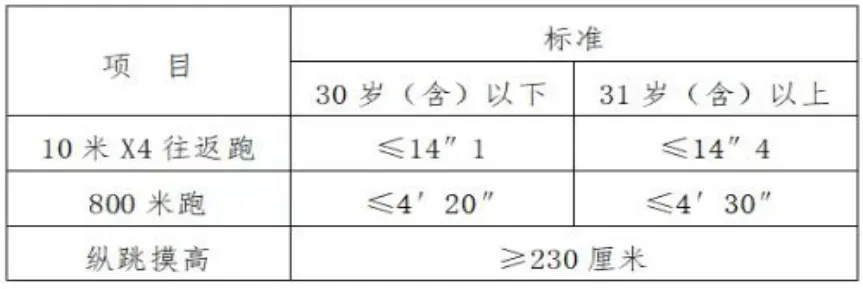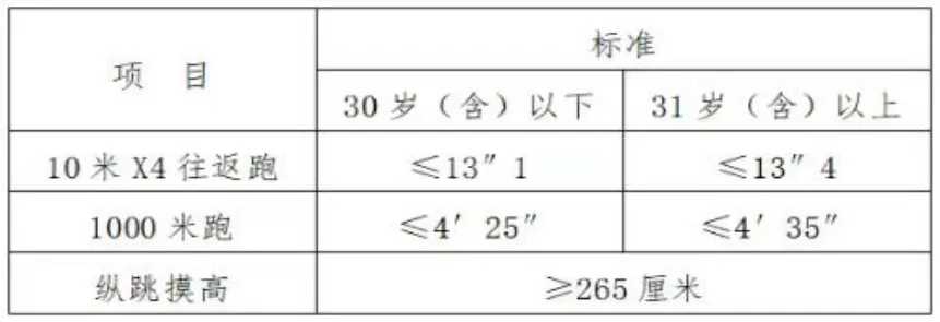 体能测评各项目标准如下:其中年龄计算时间截止到2026年4月25日。